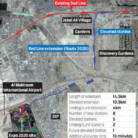 Dubai Metro extension to connect Expo 2020 site, new residential and industrial zonesDubai: Dubai Metro will be extended for 14.5 kilometres, branching out from Nakheel Harbour and Tower station to the Expo 2020 site near Al Maktoum International Airport, the Roads and Transport Authority has announced. Read more... |